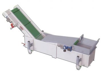 Type VRB voor producten die blijven drijven en waarbij er een 2e transportband boven de product zit welke de producten onderwater dwingt en transporteerd zodat de producten toch in het water gehouden worden.